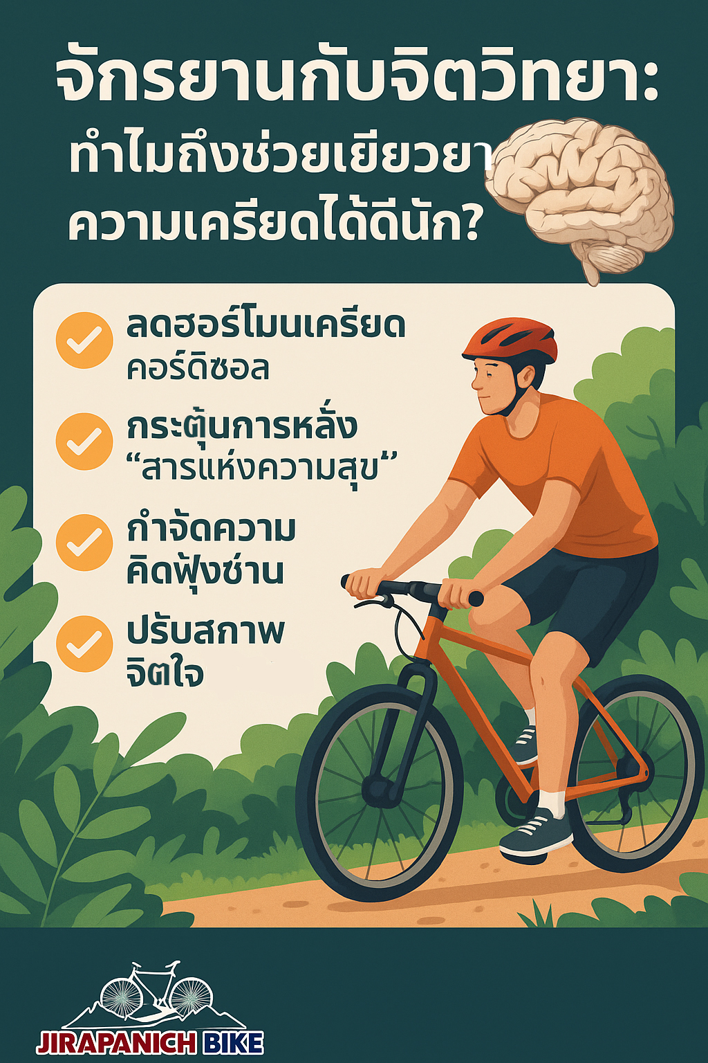 หลายคนเครียดเพราะสมองวนเวียนคิดซ้ำ ๆ แต่การปั่นจักรยานจะดึงสมองออกจากวงจรนี้
