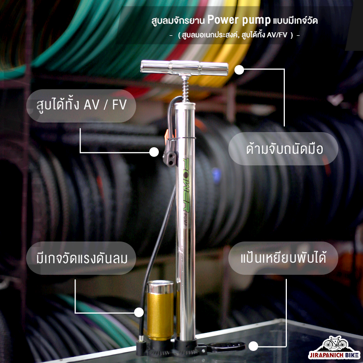 ✨ สูบลมจักรยาน Power pump แบบมีเกจย์วัด ที่สูบลมจักรยาน สูบลม