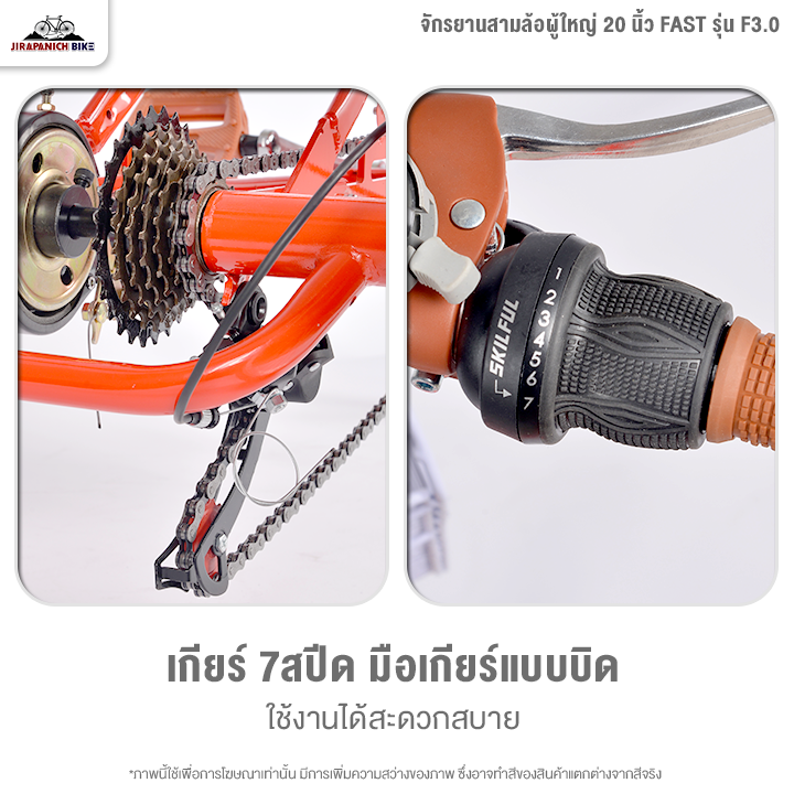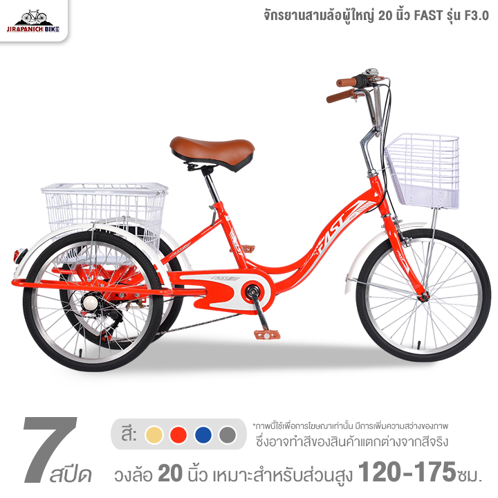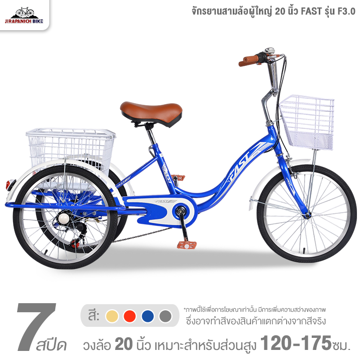 จักรยานสามล้อผู้ใหญ่ 20 นิ้ว FAST รุ่น F3.0 7สปีด (ทำการประกอบแล้ว 99%, มือเกียร์แบบบิด)