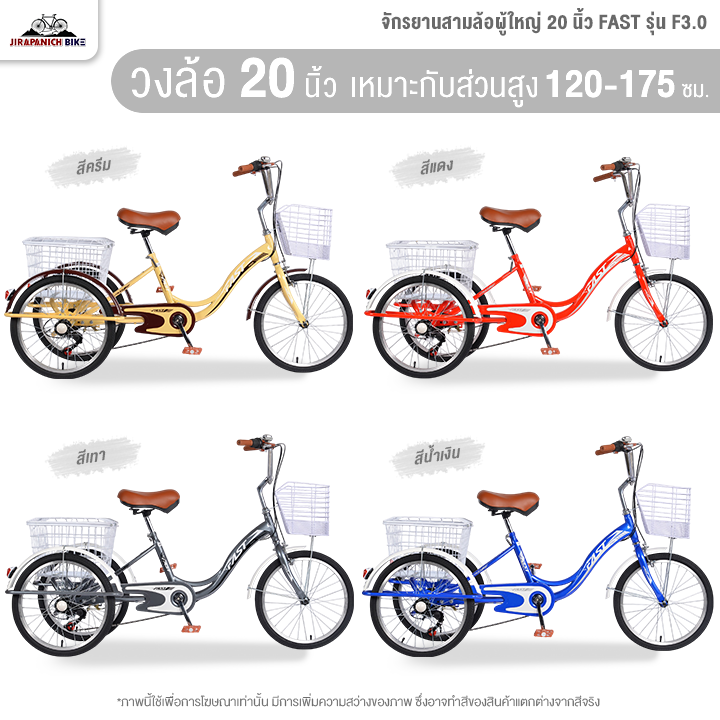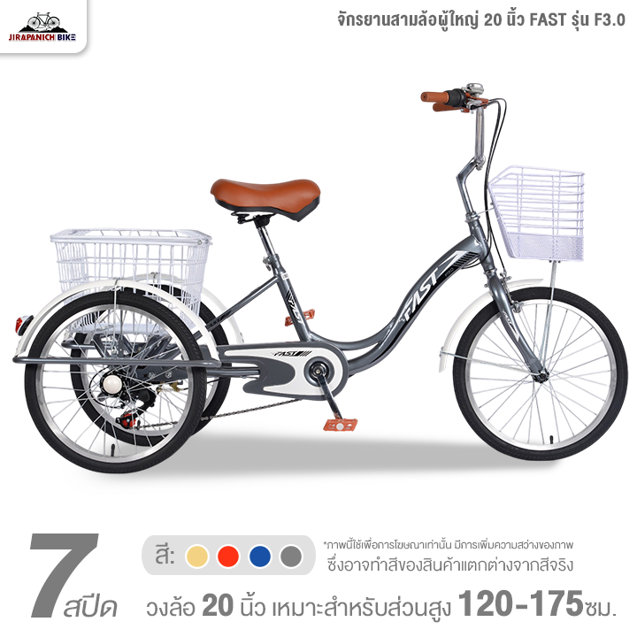 ✨ จักรยานสามล้อผู้ใหญ่ 20 นิ้ว FAST รุ่น F3.0 7สปีด (ทำการประกอบแล้ว 99%, มือเกียร์แบบบิด)