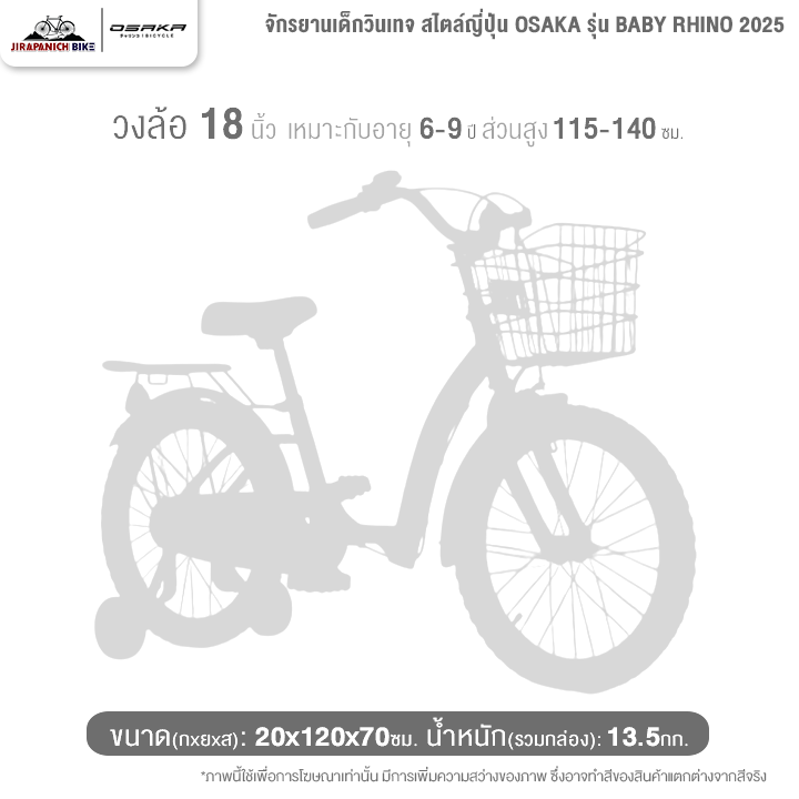 ✨ จักรยานเด็ก 18 นิ้ว จักรยานเด็กวินเทจ สไตล์ญี่ปุ่น OSAKA รุ่น BABY RHINO 2025