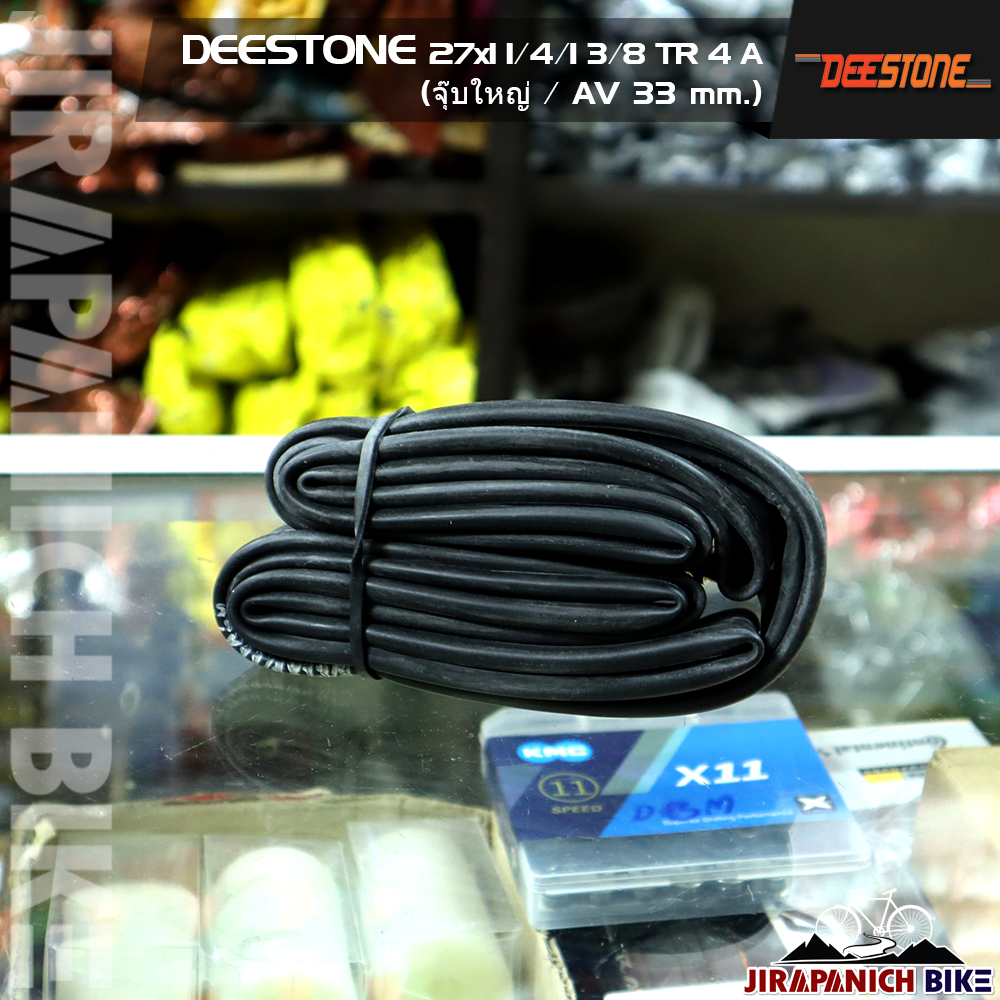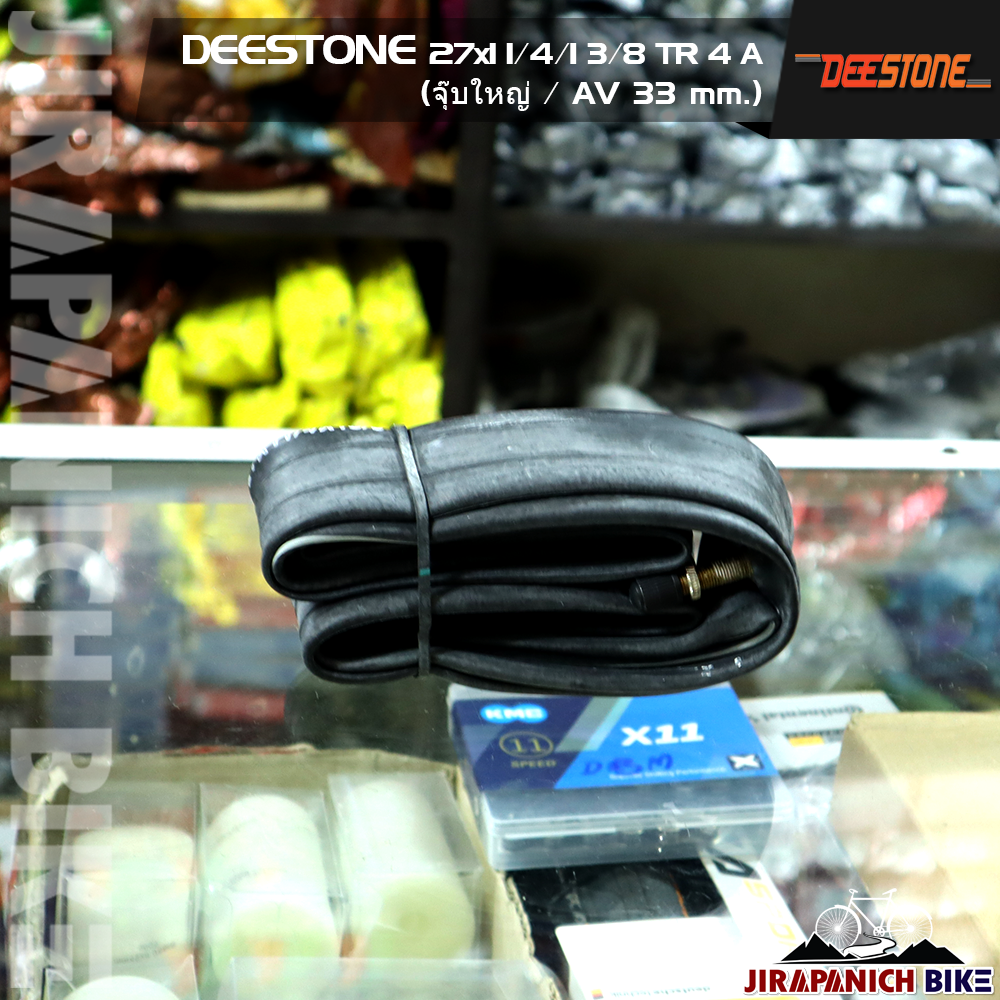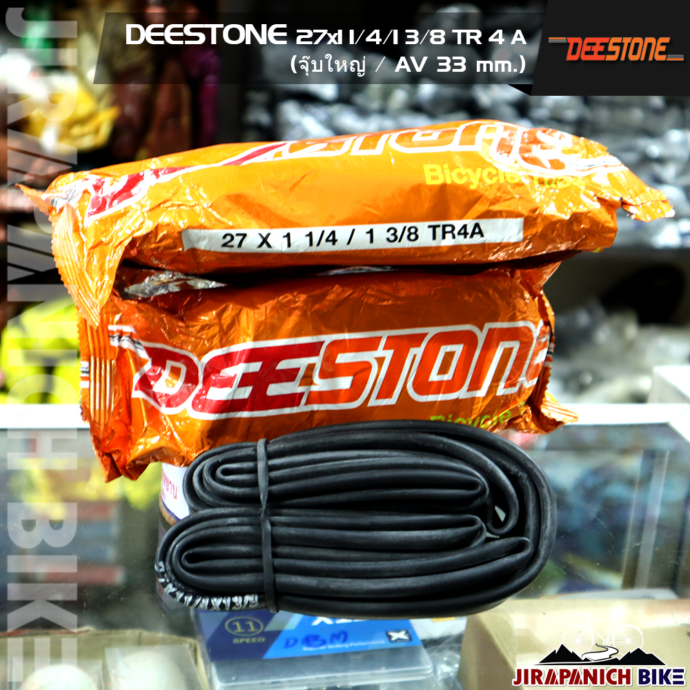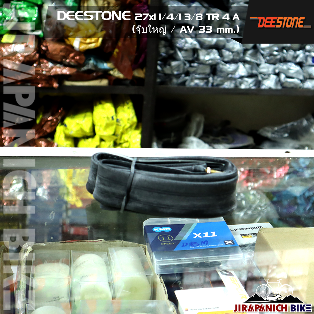 ยางจักรยาน 27 นิ้ว DEESTONE 27 x 1 3/8 (37-630) นิ้ว (ราคาต่อ 1 เส้น) ยางจักรยาน 27 นิ้ว DEESTONE 27 x 1 3/8 (37-630) นิ้ว DEESTONE 27 x 1 3/8 (37-630) นิ้ว ยางจักรยาน 27 นิ้ว DEESTONE ยางจักรยาน DEESTONE ยางนอกจักรยาน 27 นิ้ว DEESTONE 27 x 1 3/8 (37-630) นิ้ว ใช้สำหรับรถจักรยานวล้อ 27 นิ้ว ขนาด 27 x 1 3/8 (37-630) นิ้ว รหัสลายยาง (D-808-18) ผลิตในประเทศไทยได้มาตรฐานอุตสาหกรรม (มอก.) ผลิตโดย บริษัท ดีสโตน คอร์ปอเรชั่น จำกัด ยางในจักรยานญี่ปุ่น DEESTONE วงล้อ 27 นิ้ว ขนาด 27 x 1 1/4 / 1 3/8 TR4A นิ้ว (จุ๊บใหญ่ / AV / 33 mm.) แบรนด์คุณภาพ เป็นที่รู้จักของคนไทยมาอย่างยาวนาน ยางในสำหรับจักรยานขนาดวงล้อ 27 นิ้ว โดยเฉพาะ ยางเหนียว ทนทาน ใช้งานได้ดีทุกสภาพถนน หัวจุ๊บใหญ่ความยาว 33 mm เนื้อยางคุณภาพดี ผลิตจากโรงงานในประเทศไทย สามารถใช้กับที่เติมลมทั่วไปได้สามารถใช้กับที่เติมลมทั่วไปได้