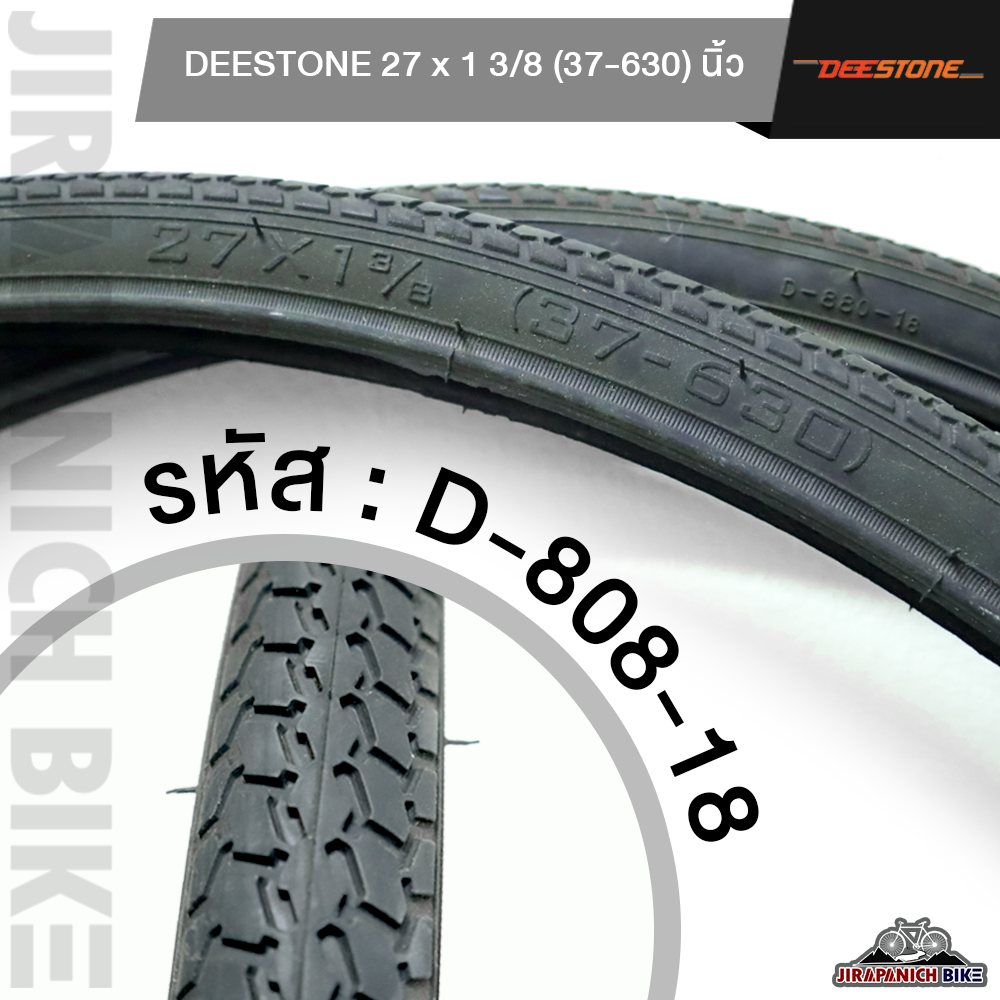 🚵♀ ยางนอกจักรยาน 27 นิ้ว DEESTONE 27 x 1 3/8 (37-630) นิ้ว ✅ ใช้สำหรับรถจักรยานวล้อ 27 นิ้ว ✅ ขนาด 27 x 1 3/8 (37-630) นิ้ว ✅ รหัสลายยาง (D-808-18) ✅ ผลิตในประเทศไทยได้มาตรฐานอุตสาหกรรม (มอก.) ✅ ผลิตโดย บริษัท ดีสโตน คอร์ปอเรชั่น จำกัด